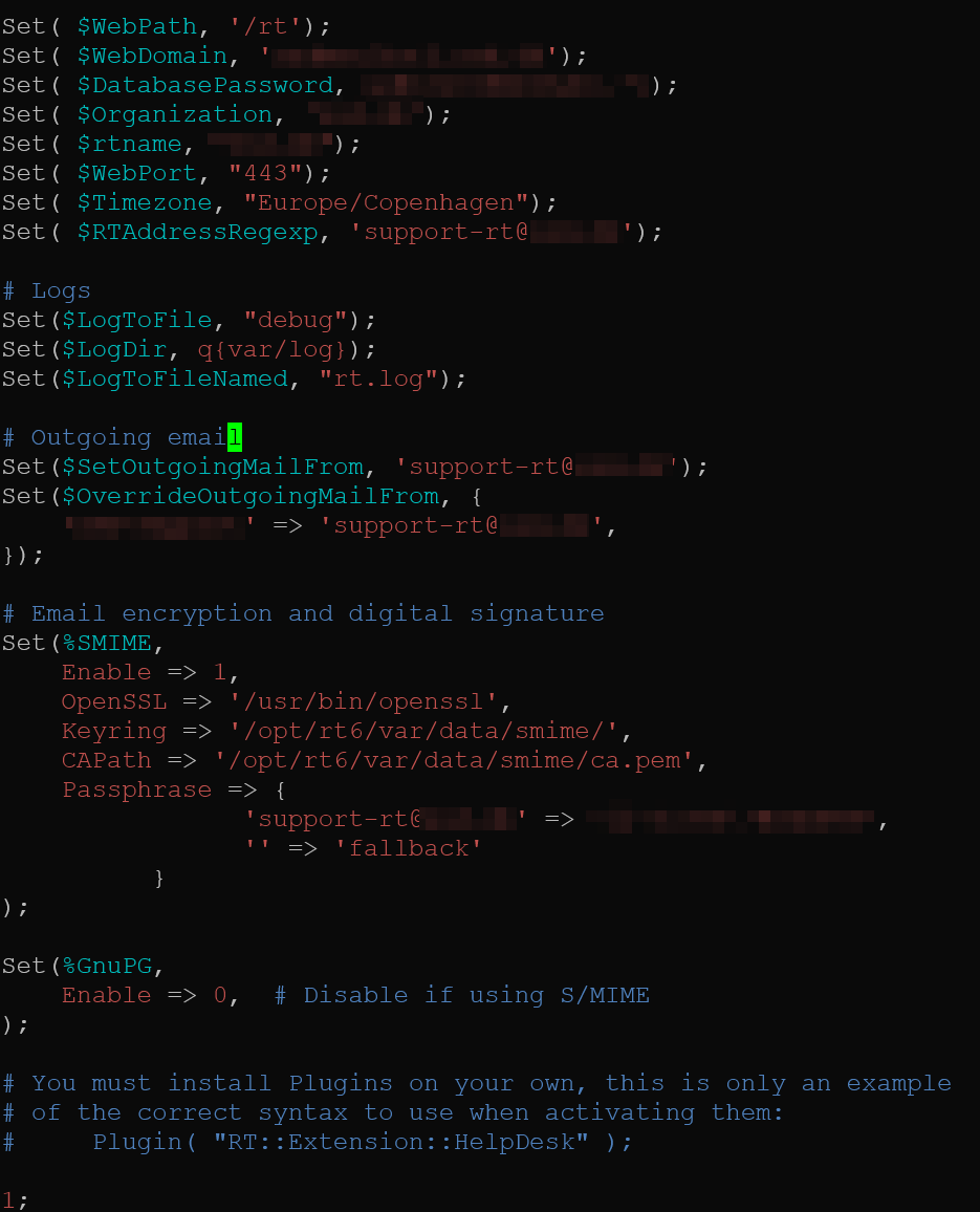 It should be the right password in the RT_SiteConfig.pm… What exactly needs to be configured in the keyring pem file?